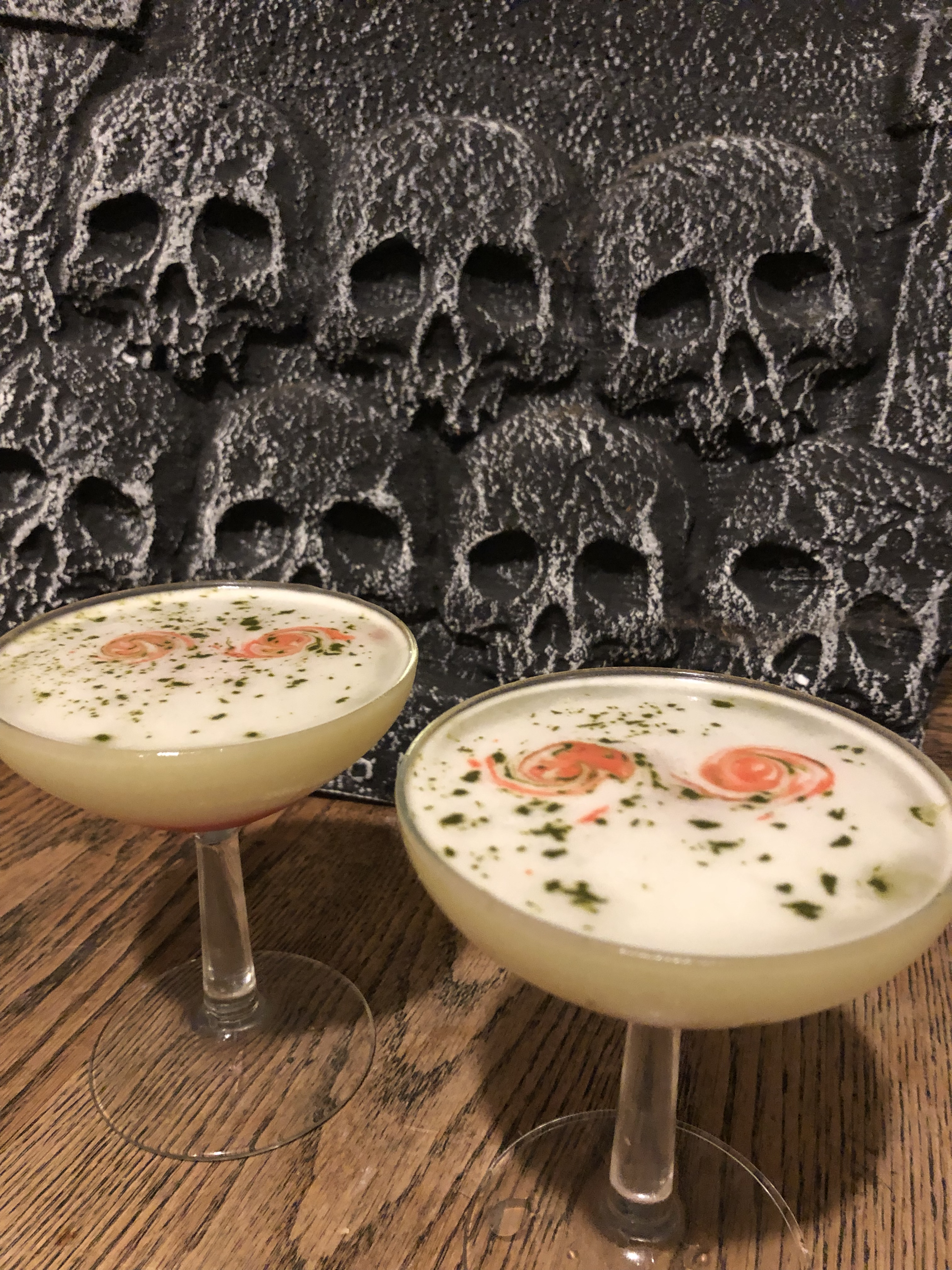 We screened the 1981 creature feature Boogens for our opening night extravaganza. Our signature cocktail for the evening, a vegan gin matcha sour with cranberry bitters, was created to resemble the film’s titular monster. We’ll let you be the judge of whether we succeeded or not.
